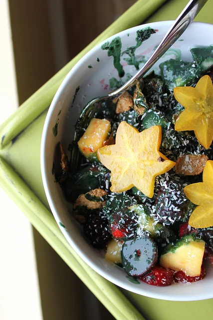 3. Pour dressing over fruit, cereal and coconut and stir until everything is coated.